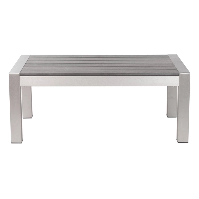 The Modern Cosmopolitan coffee table features an aluminum frame accented with poly-wood slated table top design. Collection includes sofa or armchair and sofa aluminum frame and either orange or green cushions. Sold Separately.