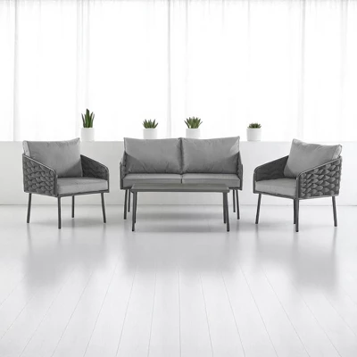 - Modern 4-Piece Set: Includes a loveseat, two armchairs, and a coffee table, designed with sleek lines and a contemporary aesthetic perfect for any patio or garden.