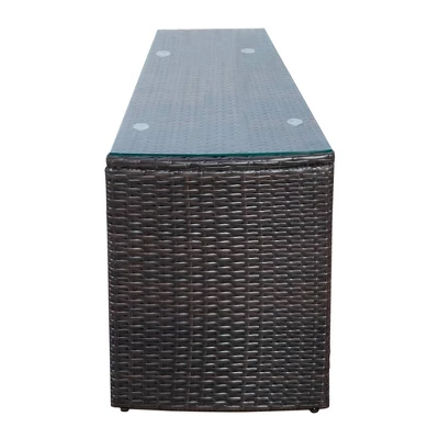 - STURDY & DURABLE – Constructed with weather resistant powder coated steel framing with tightly woven brown PE rattan and table surface featuring heavy-duty tempered glass for durability.