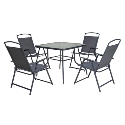 Crestlive Products 5-piece patio dining set will be perfect for your outdoor, indoor life. Made of solid steel frame with durable, weather-resistant fabric for years of use. The quick-dry fabric is completely weatherproof with UV protection. Matched with a coffee table which has tempered glass top for you to put snacks, drinks, brunch, and magazines on it. Assembly is not required for chairs and easy assembly for the table with all necessary hardware, tools and manual. The patio furniture is the best choice for you to enjoy yourself with your friends or families in your garden, poolside, backyard or balcony.