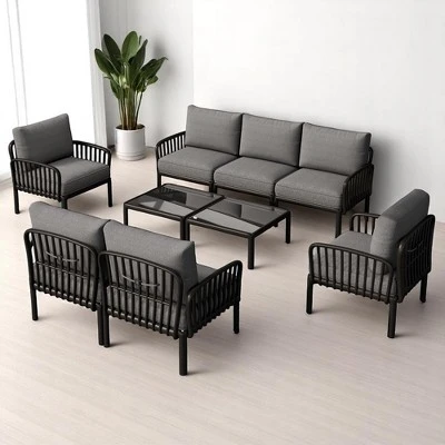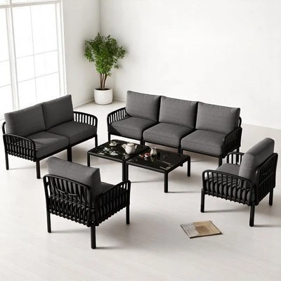 Stylish and Modern Design: With sleek lines and contemporary curves, this sofa set complements any patio or garden decor, adding a touch of elegance to your outdoor setting.