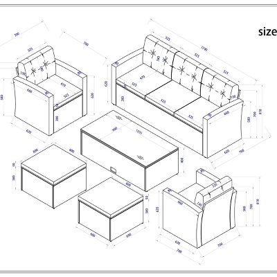 - Size Information: Seats up to 7 people comfortably, ideal for various outdoor and indoor settings. Sofa: 68.5”Wx24.4”Dx24.4”h; Ottoman: 23.6”Wx23.6”Dx16.9”H; Coffee Table: 47.2”Wx23.6”Dx15.7”H; Arm Chair: 27.5”Wx24.4”Dx31.8”H.