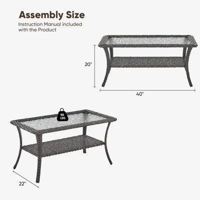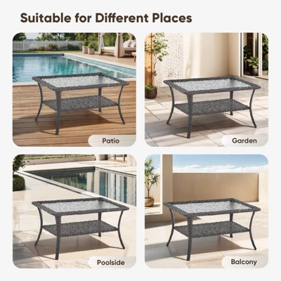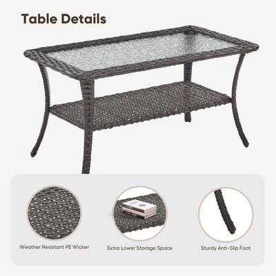 - Elegant Tempered Glass Tabletop – The rattan coffee table includes a shatter-resistant glass surface that’s easy to wipe clean while adding a modern, sophisticated touch to your outdoor space.