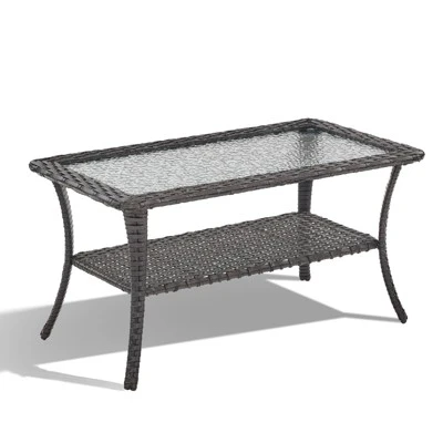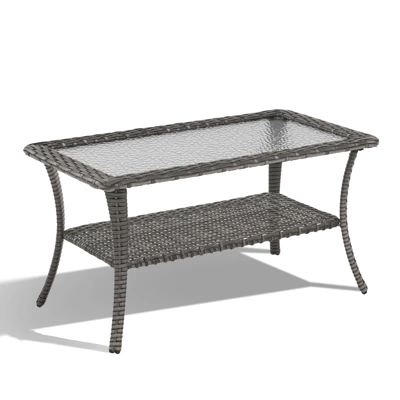 - Wicker Patio Coffee Table – Crafted from premium PE rattan and a sturdy metal frame, this all-weather patio rectangle coffee table resists fading, cracking, and rust, making it ideal for year-round outdoor use.