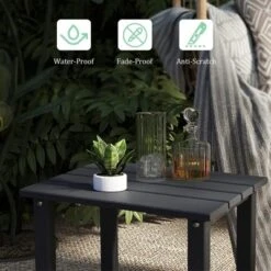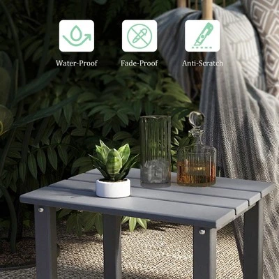 Add some extra style to your patio with the stylish Adirondack-style side table. This attractive side table is made with HDPE, making it durable and having a weather and UV-resistant treatment, protecting it from the outdoor elements and preventing fading, keeping that beautiful color year round.