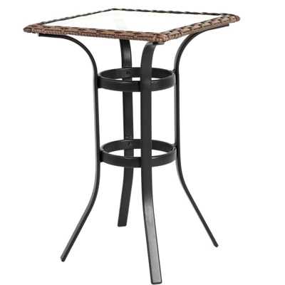 - This 3-piece wicker patio bistro set features a square high-top bar table with a durable tempered glass top, providing a sturdy surface for drinks, snacks, or decor. The rattan-wrapped edge adds an extra layer of safety and style