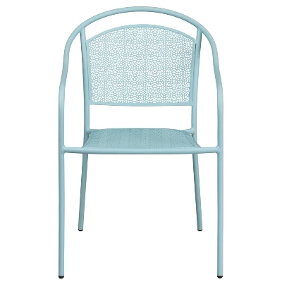Add color and style to your kitchen, patio or bistro and liven up your decor with this impressively designed chair. This colorful silver chair is a rare find that is crafted in a transparent rain flower design. The curved, round back and integrated arms provide a comfortable place to relax. The versatility of this chair allows it to easily go from your backyard to the courtyard dining area of your restaurant. Chairs are lightweight and easily stack for storing. The frame is designed for all-weather use making it a great option for indoor and outdoor settings. For longevity, care should be taken to protect from long periods of wet weather. The legs have protective plastic feet that prevent damage to flooring. Additional Features: Powder Coated Frame Finish, 1.2mm Tubular Frame, Floor Protector Plastic Glides, Lightweight Design, Designed for Indoor or Outdoor Use, Designed for Commercial or Residential Use