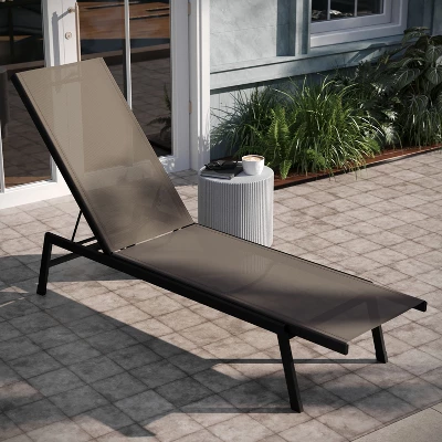 Nice weather is right around the corner and you will be more than ready when you have this 5 position adjustable lounger. With recline angles from 120° to 180° you can sit up to read that bestseller you’ve been meaning to get to, lay flat to take a little nap or enjoy the recline positions in between. Breathable textilene fabric allows for airflow to keep you cool and is quick drying making it ideal for poolside use. Designed to stand up to the elements, this lounge chair is UV fade and weather resistant and boasts a powder coated rust-resistant steel frame that holds up to 350 lbs. static weight. Protective floor caps prevent damage to indoor flooring and keep the chair in place when you sit or stand. Weighing in around 20 lbs. this outdoor lounge chair is highly portable to take along to your favorite locations. Assembly takes less than 30 minutes and cleanup is quick and easy with a damp cloth, perfect for busy households. Purchase several to complete your indoor or outdoor setup.