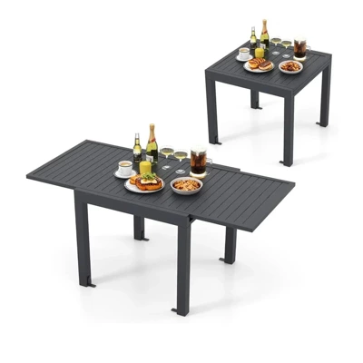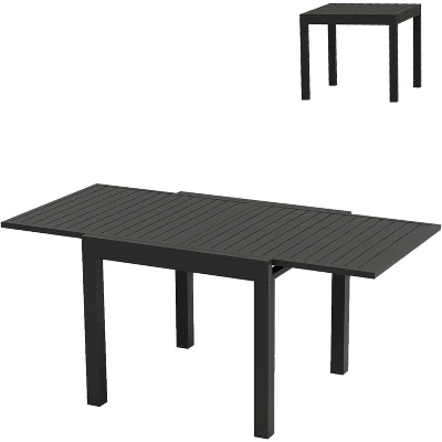Expandable Patio Table for 4-6 Persons, Extentable Outdoor Dining Table Set 31.5”-63”, Aluminum Slat Frame, Rectangular, for Porch, Deck, Garden, Pools, Table