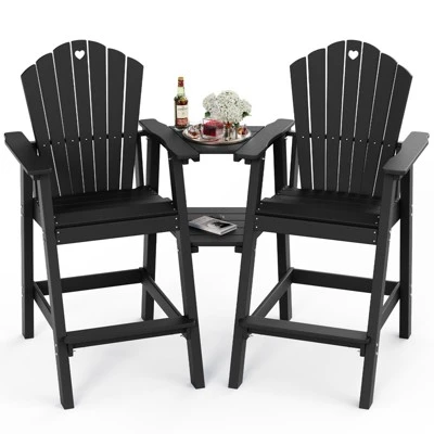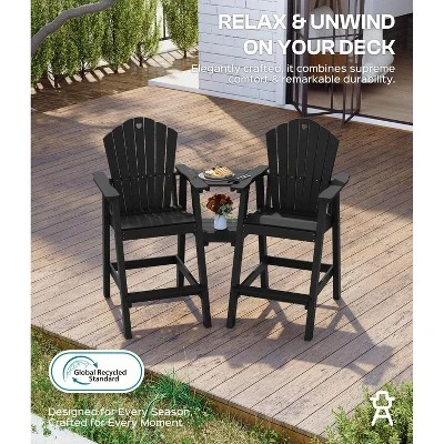 Extra-Tall Seat for Full ComfortFeatures a 28″ extra-tall seat and wide footrest designed to support up to 370 lbs, providing comfortable seating without cramped legs.Durable All-Weather HDPE ConstructionMade from HDPE material that resists fading, cracking, and rust. Built to withstand rain, snow, and UV exposure with a 5-year color guarantee.Versatile 2-in-1 Detachable TabletIncludes double-layer trays for drinks, snacks, and plants, plus an umbrella hole for instant shade—ideal for backyard, poolside, or camping use.Easy Assembly in 20 MinutesComes with all necessary tools and a step-by-step guide. Assembly by two people is recommended. A video tutorial is available for smooth setup.Low Maintenance DesignSimply wipe clean with soap and water. No painting, staining, or seasonal storage required.