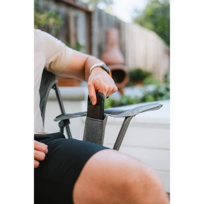 Lightweight yet sturdy, and always ready for adventure, the GCI Outdoor Comfort Pro Chair is the perfect chair for any occasion. Featuring a mesh backrest for continual airflow and soft armrests with a convenient beverage and phone pocket, you’ll stay cool, comfortable and connected while enjoying the outdoors. Made of a durable ripstop fabric that can hold up to 250 lbs, the Comfort Pro will be a permanent fixture in your trunk – whether you’re heading out to the ball field, traveling to a music festival or vacationing by the lake. When it’s time to head home, the frame folds compactly into the included carry bag for easy portability. Just slip the strap over your shoulder, leaving your hand free to carry the cooler, sports equipment, or winning trophy.
