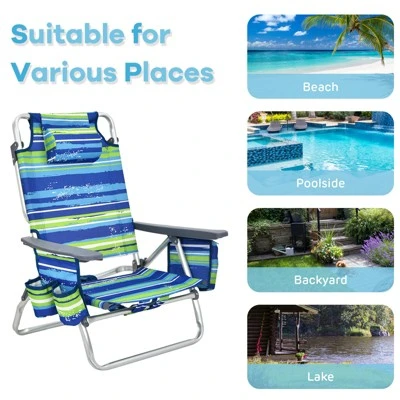 - 5-position Adjustable Backrest: The back height of the beach chair can be adjusted from 11” to 33”, so that you can choose a suitable angle for sunbathing, reading or chatting. Besides, the headrest with soft sponge padded offers a more comfortable feeling for sitting or lying down.