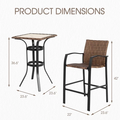 - This Bar Chair comes with high quality steel frame tightly wrapped with woven PE Rattan. The rattan bar stool is resistant to rust, fade, and water. It is designed for years of beauty.