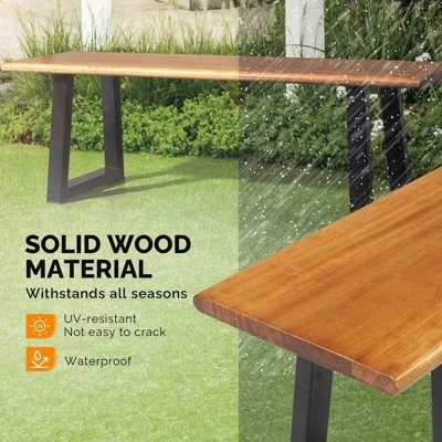 - Built for the Outdoors: Crafted from premium solid wood with heavy-duty metal legs, this patio bench is designed to withstand the sun and rain while maintaining its natural beauty. Its sturdy construction supports up to 600 lbs.