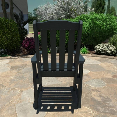 This product is assembled with 304-grade stainless steel hardware and comes with the assurance of a manufacturer’s 12-year residential limited warranty. The chair has been load-tested, per ASTM 1561-03 (2008) standard for outdoor plastic furniture and have a 500-pound weight capacity. Some assembly is required (see assembly guide) and assembled dimensions are 19″L x 38.3″H x 23.3″D (24lbs).