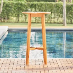 You’ll love hanging out with family and friends outdoors with the Malibu Wood Outdoor Patio Dining Set from Vifah. Crafted from durable wood with a beautiful natural-grain finish, the five-piece patio furniture set includes a rectangular dining table and four armchairs. The brown patio dining set features a slatted design on the tabletop and chairs, complete with diagonal cutouts that create geometric motifs on the back of the armchairs. Plus, the table has a hole in the middle where you can easily install an umbrella — and the contoured seats provide enhanced comfort. Designed to withstand the elements, this wooden dining set is the perfect addition to your patio, deck or backyard space.