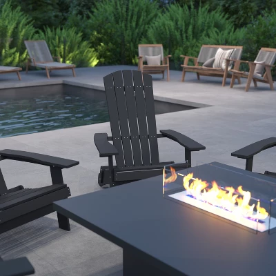 Take this set of 4 foldable Adirondack style lounge chairs to your favorite spot on the beach, at your campsite or your own back yard and relax in style. This classic style lawn chair boasts a faux wood design, vertical lattice back and is UV protected to help retain its great looks. Constructed of weather-resistant polystyrene, this folding lounge chair won’t rot, peel or splinter and is strong enough to accommodate users up to 350 pounds. These slat back chairs assemble in under 30 minutes allowing you to quickly wind down and let go of the day.