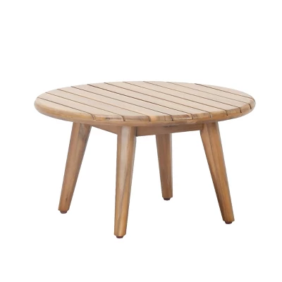 Enhance your outdoor living area with the stylish and functional Spring Acacia Wood Patio Outdoor Side Table. Made from high-quality, durable acacia wood, this side table features a modern, round design with slatted wood detailing. The sturdy, angled legs and smooth, natural finish make it a versatile and attractive addition to any outdoor setting. Perfect for holding drinks, snacks, or décor, this table combines practicality with a sleek, minimalist aesthetic.