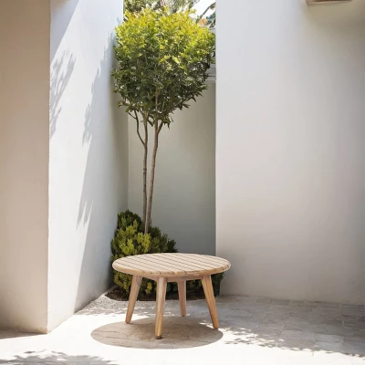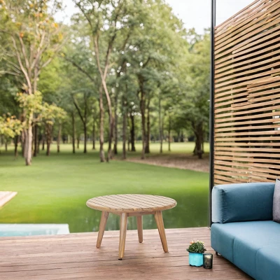 - Modern Design: Features a round shape with a slatted top and sturdy angled legs, adding a contemporary touch to any outdoor space.