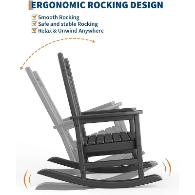 Savor outdoor relaxation with the Nasitip HDPE Rocking Chair, where classic Adirondack style meets modern durability! This all-weather rocking chair is crafted from UV-resistant HDPE lumber that withstands sun, rain, and snow without cracking, peeling, or fading. The 40.16″ high backrest and wide seat (35.04″D x 24.01″W) deliver ergonomic comfort, while the smooth rocking base ensures gentle motion. Supporting 380 lbs, its sturdy plastic frame (38.47 lbs) is perfect for patios, porches, or firepit areas. Low-maintenance and rust-proof, it assembles in minutes and cleans easily with soap/water. Choose from navy, white, black, or gray to match your outdoor decor!