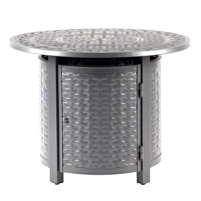 Oakland Living Aluminum Round Outdoor Patio Dining Table With Lid & Covers Gray