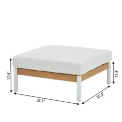 This 4-piece outdoor conversation set offers a thoughtfully crafted combination of comfort, natural texture, and functional design, making it suitable for a range of outdoor settings such as patios, balconies, garden areas, or poolside spaces. The set includes a right armchair, a left armchair, a corner unit, and a solid wood coffee table, forming an L-shaped layout that supports relaxed seating for gatherings or daily outdoor enjoyment.Constructed from acacia wood, the frame presents a sturdy foundation with a naturally rich grain and a grayish brown tone that blends seamlessly with outdoor surroundings. The woven mesh-style armrests add a distinctive detail, giving the set an airy, handcrafted look while offering supportive structure. This openwork design contributes to the overall visual appeal without compromising on durability.Each seat is fitted with a 4-inch thick high-density foam cushion, designed to provide a soft yet supportive experience. The beige cushion covers are secured with Velcro to help prevent slipping and shifting during use. Additionally, six matching backrest pillows are included, enhancing both comfort and cohesion in design.The coffee table and seating units are equipped with adjustable foot pads, supporting balance on uneven outdoor surfaces and adding to the overall stability of the setup. Whether placed on stone, wood, or tile flooring, the components are designed to adapt to their environment.Assembly is made simple with included hardware and instructions, and daily upkeep is easy with a routine wipe-down using a dry cloth. This set offers a blend of natural materials and contemporary styling, creating a relaxed and welcoming atmosphere for outdoor leisure and conversation.