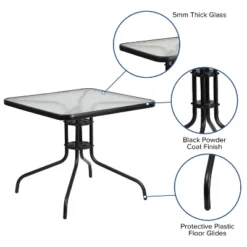 Emma And Oliver Commercial Grade 23.75″ Square Metal Indoor-Outdoor Table Set With 2 Arm Chairs