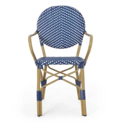 Paul 3pc Outdoor Aluminum French Bistro Set – Dark Teal/White/Bamboo – Christopher Knight Home