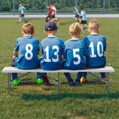 Product DescriptionMade from high-density polyethylene, this plastic folding bench is weather-resistant, easy to clean, and built to withstand sun, rain, and snow without cracking or fading.Features thicker metal frame with anti-slip feet and a locking mechanism to prevent wobbling or accidental collapse. Ideal as a sports bench, team bench, or lifetime bench.