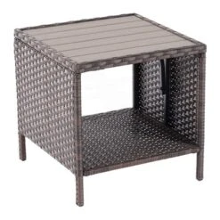 Sonkuki Outdoor Patio Furniture, Square PE Rattan Wicker Side Table With Storage Shelf