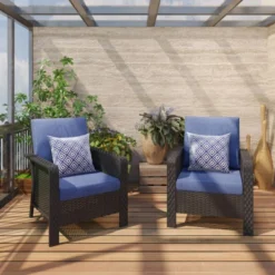 SUGOLD Hand Woven Wicker Patio Conversation Set With Blue Cushions
