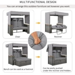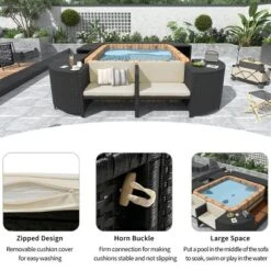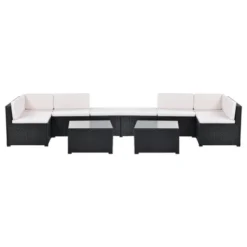 10pc Wicker Patio Sectional Seating Set With Cushion – Black/Beige – GODEER
