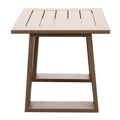 Simple Relax Outdoor 24″ End Table With Sled Base In Wood Grained Finish