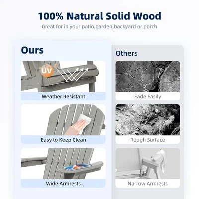- PREMIUM HEMLOCK WOOD:Outdoor folding adirondack chair is using selected solid wood, every piece was well selected and with brushed finishing, giving you premium and royal feel when sitting on it
