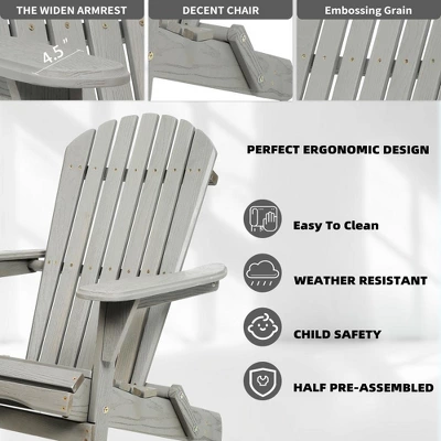 - LOW MAINTENANCE:This patio Adirondack chair set cleans easily with soap and water. You never need to paint or stain it. Saving your time and money.