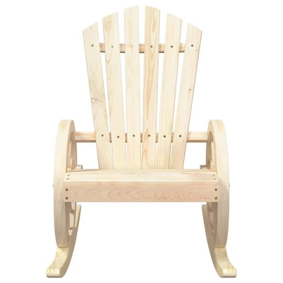 Enjoy relaxing moments outdoors with this stylish rocking Adirondack chair, crafted from solid fir wood for durability and rustic charm. Designed with comfort and classic appeal in mind, this chaise lounge seating is perfect for patios, gardens, porches, or any outdoor living space. The distinctive wagon wheel-style rocking base adds a unique touch to your outdoor décor.