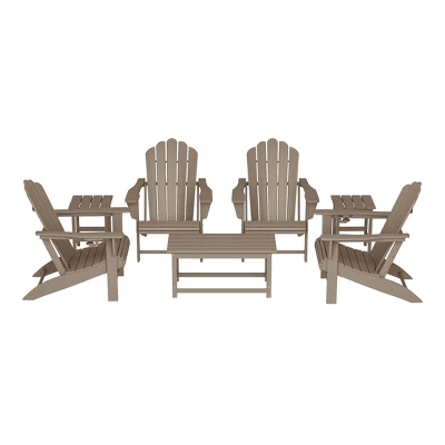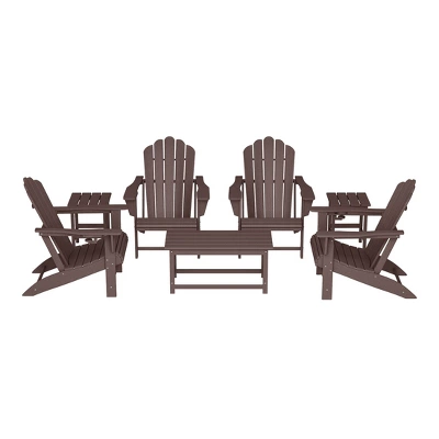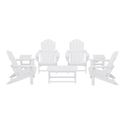 - What’s Included: (4) Adirondack Chair; (2) Side Table; (1) Coffee Table